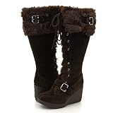 CLASSY Furry Wedge Winter Snow BROWN Boots Women's (Apparel)