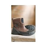 - Waterproof, full-grain leather upper in a casual, pull-on cold-weather boot with round, reinforced toe