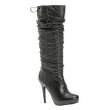 With a glamour attitude and refined detailing, these dress boots couldn't by any hotter. Leather upper with tall, pleated shaft and side tie. Concealed platform.